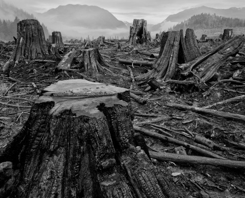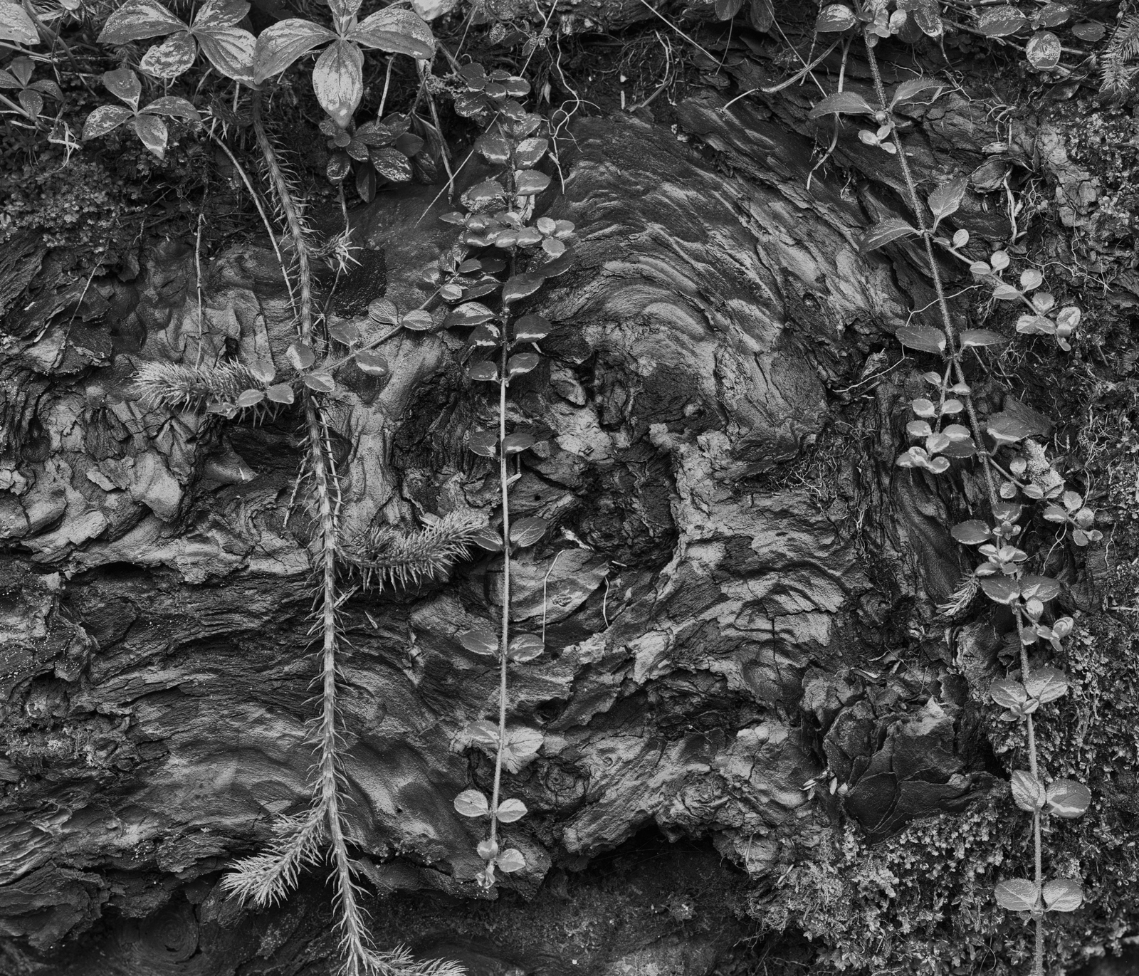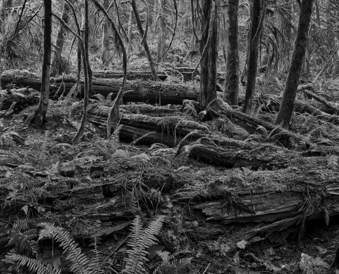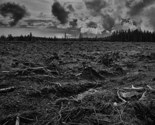 Clearcut is a collection of images that I have made from logging sites around my home. The sites are ugly slashes of chaos when you first come upon them but moving in a little closer can show the regeneration and some beauty.
